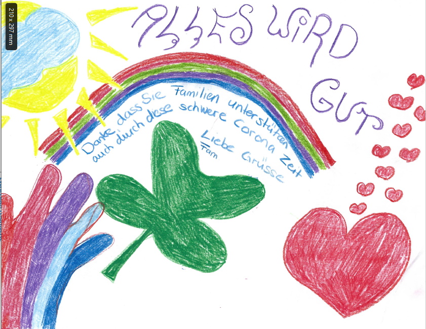 "Wir sind Ihnen sehr dankbar, das Sie uns damit so sehr geholfen haben in dieser Situation. Sie haben uns außerdem wieder Hoffnung, Zeit und neuen Mut gegeben. Schön das es euch gibt und vielen Menschen helft, die in Not geraten sind. Ich werde, wenn es sich bei mir eingependelt hat, auf jeden fall eine Spende tätigen. Was Sie/Ihr tut ist einfach himmlisch Nochmals ein dickes Danke und weiterhin viel Erfolg.Freundliche Grüsse J.R." (Original-Dankesschreiben. Familie hat Unterstützung aus COVD-19-Fonds für Erwerbstätige erhalten)