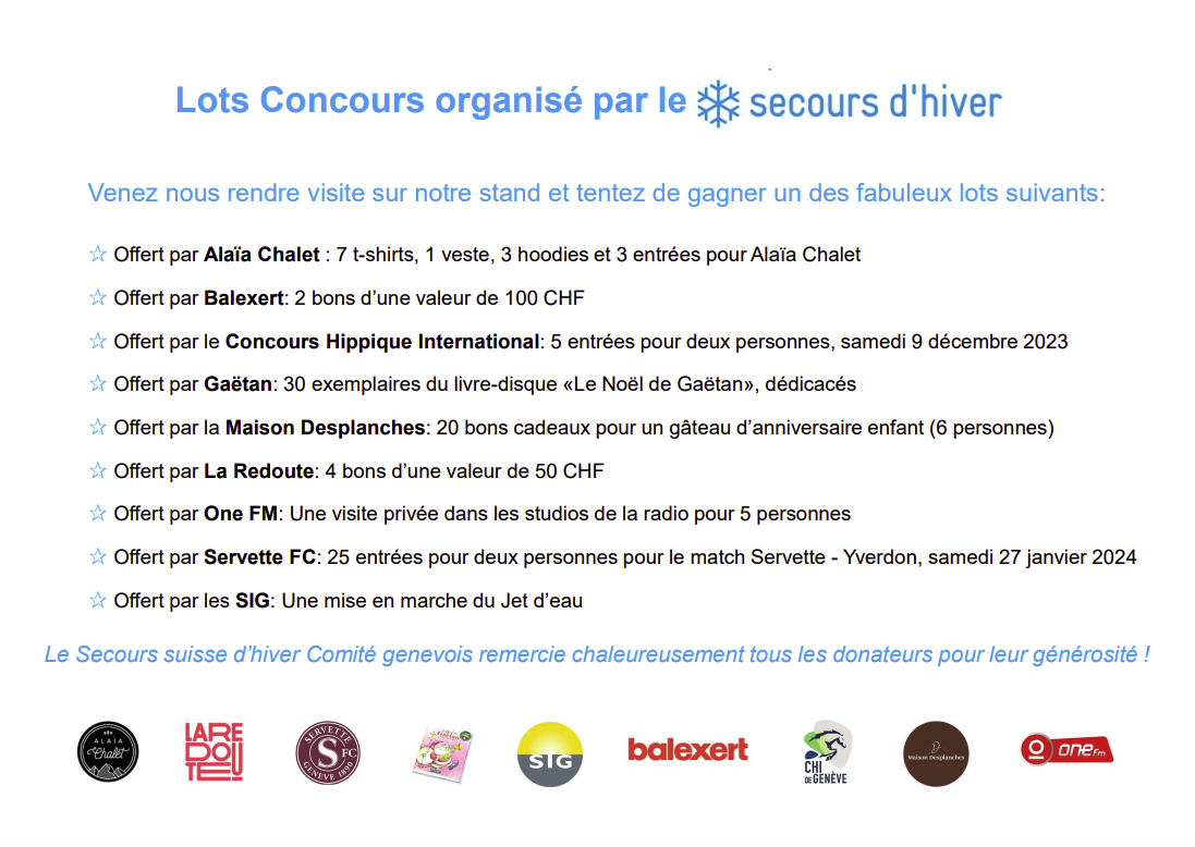 Im Namen der Winterhilfe Genf danken wir Ihnen, dass Sie an der 45. Course d'Escalad in den Winterhilfe-Farmben laufen. Mit dem Tragen unsere Shirts (Sie erhalten es kostenlos), unterstützen Sie unsere Arbeit für Menschen, die im Kanton Genf an der Armutsgrenze leben.