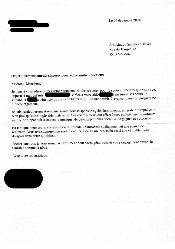Ein herzliches Dankeschön an die Winterhilfe Waadt