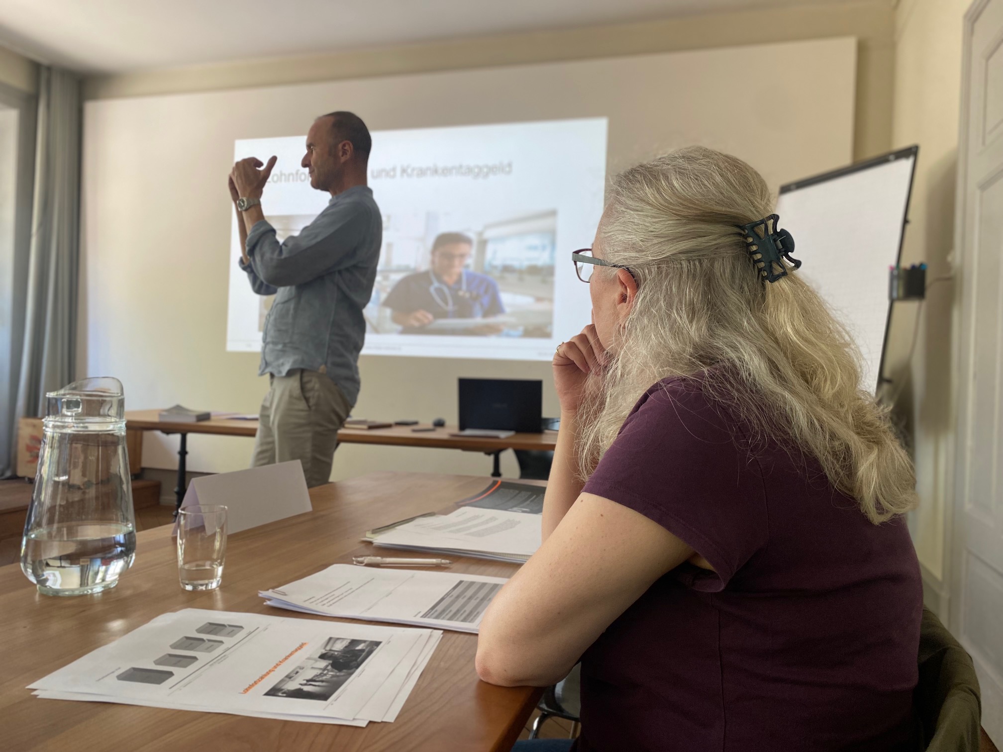 Die Teilnehmer/innen vertieften im Kurs ihr Wissen zum Thema Sozialversicherungen. Weiter erhielten sie die Möglichkeit, Fragen rund um die Gesuchsprüfung einzubringen. Mit dem erworbenen Wissen werden sie in Zukunft Gesuche um Unterstützung noch besser beurteilen können.
