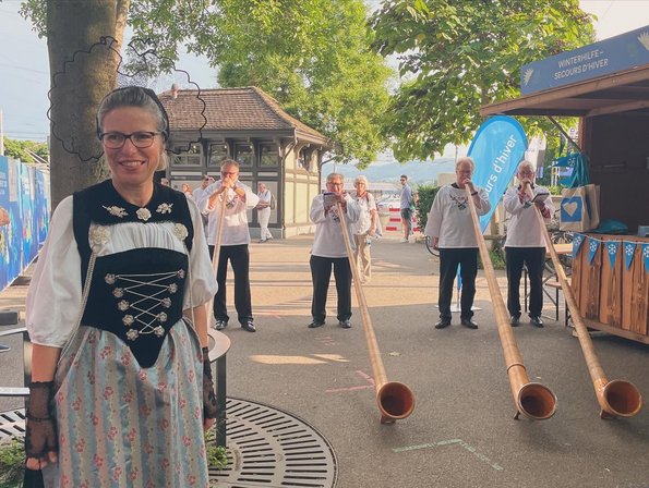 Monika Stampfli mit den Alphornfreunden Vitznau (mit unserem Präsidenten Thierry Carrel).