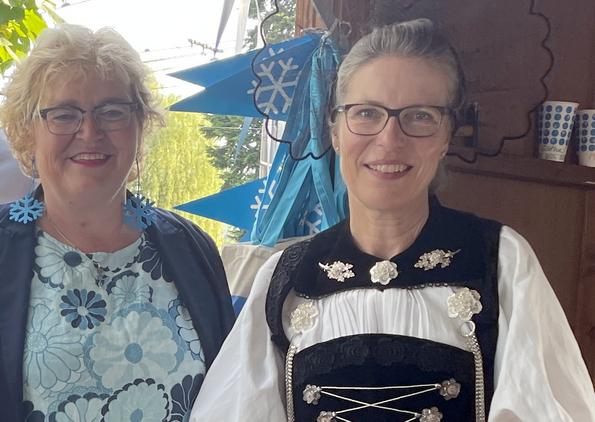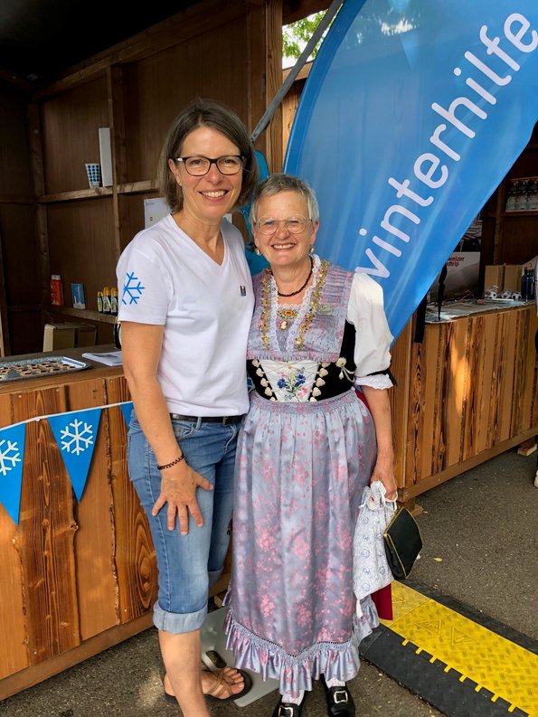 Monika Stampfli mit Regina Dobler, Geschäftsführerin Winterhilfe AI, die am Trachtenumzug mitlief.