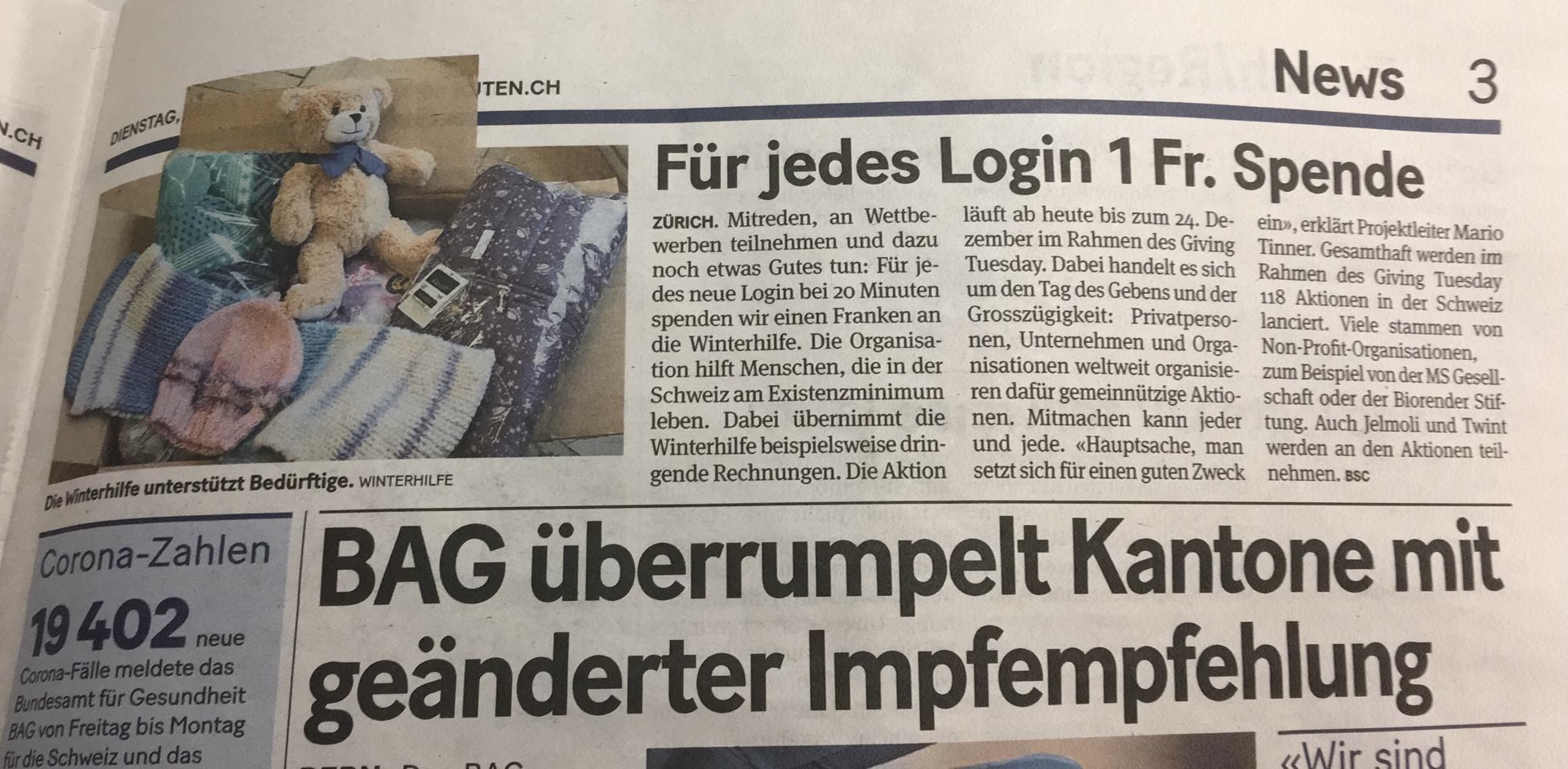 - 10/23: Zuerich24: Kleidersammlung für die Winterhilfe