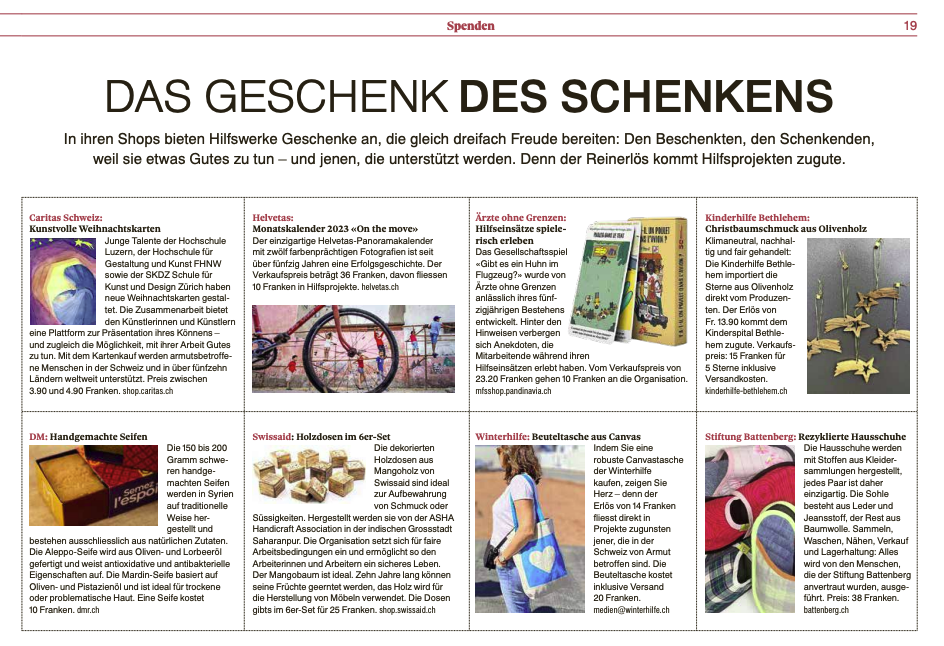 - 11/22: NZZ am Sonntag und der Sonntagszeitung_Spendenbeilage und Tasche